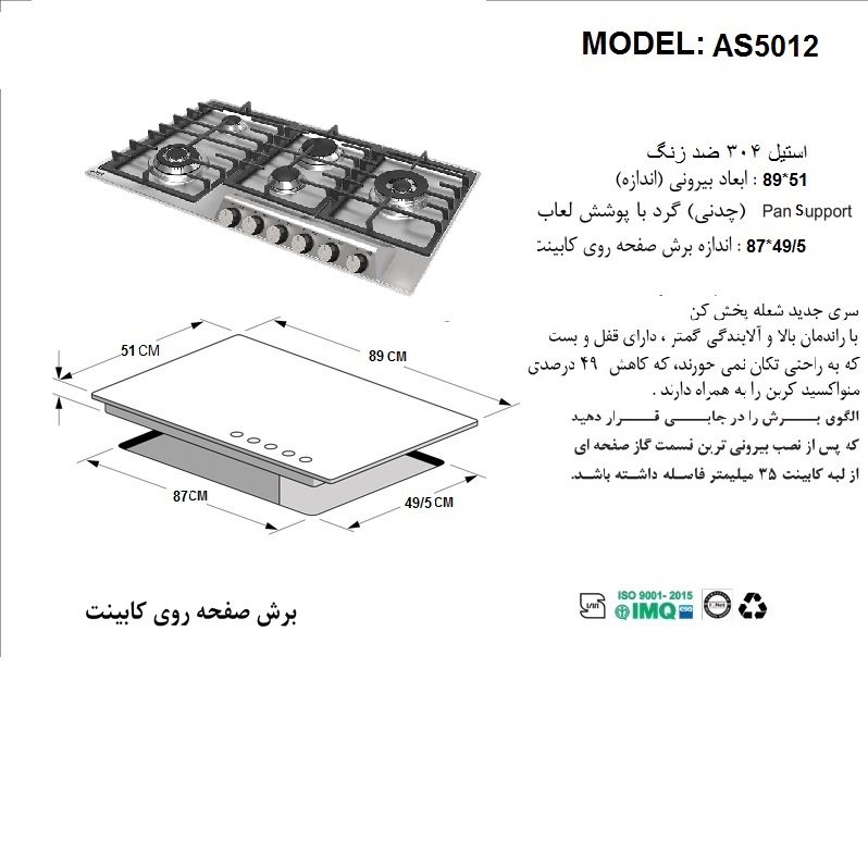 اجاق گاز استیلی مدل AS 5012